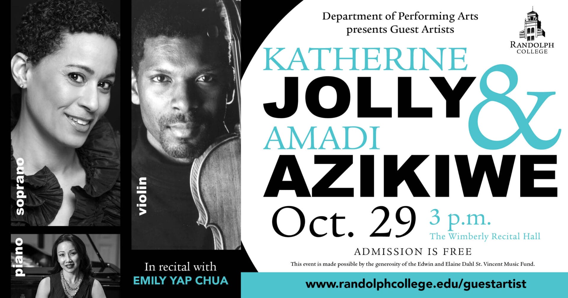 Soprano Katherine Jolly and violinist Amadi Azikiwe join forces with Randolph faculty member Emily Yap Chua for this special free recital.