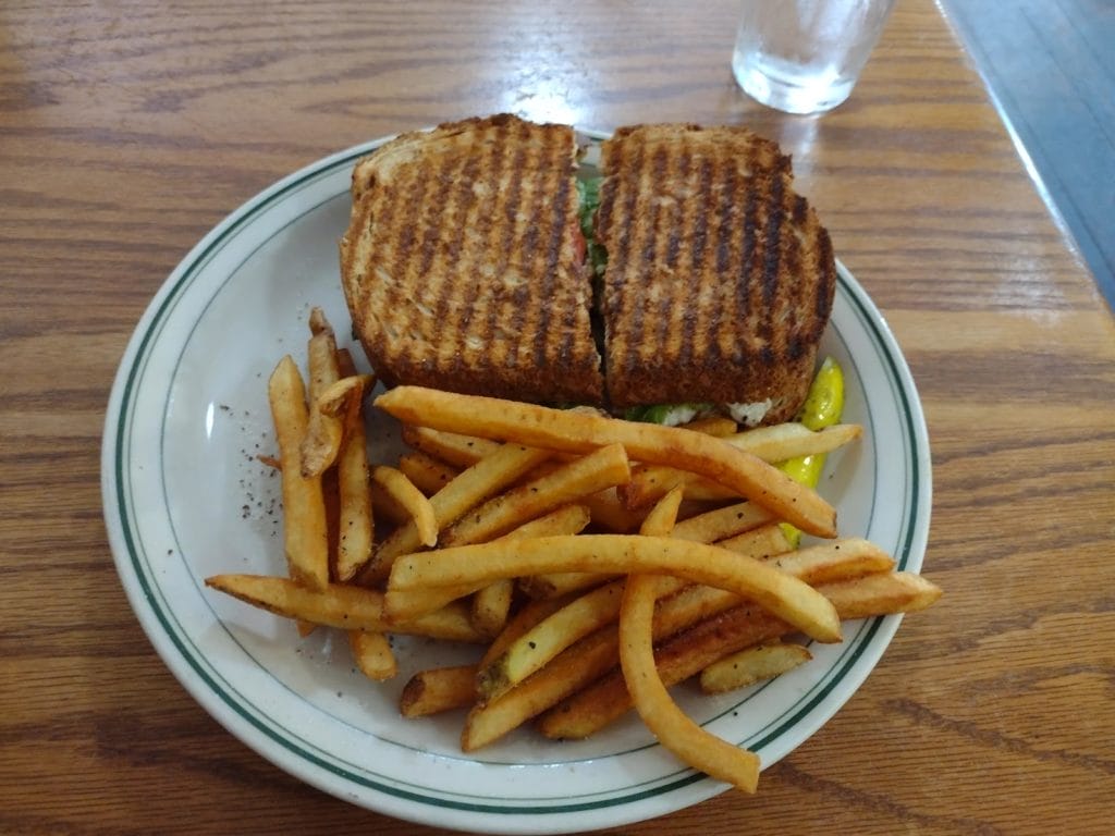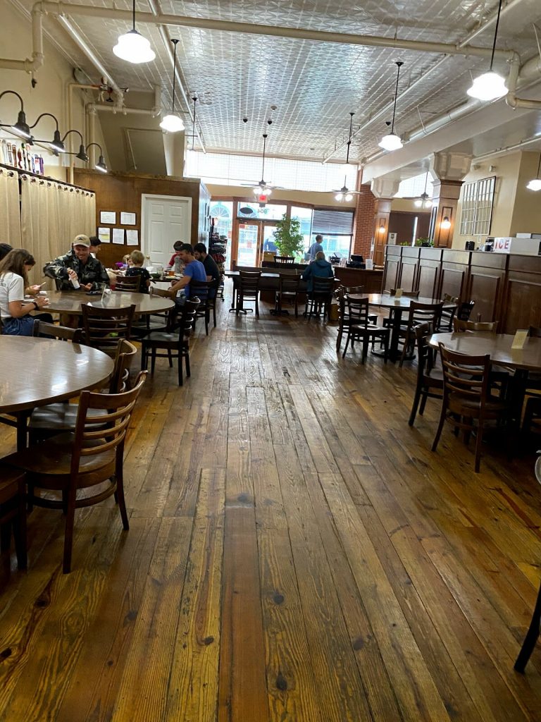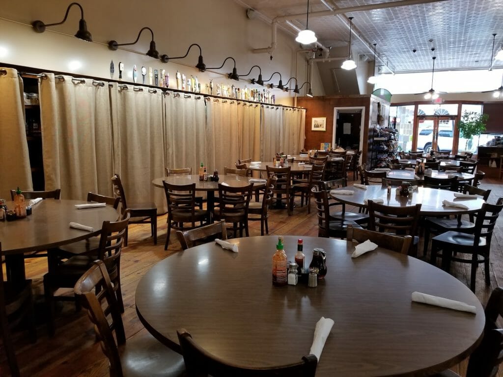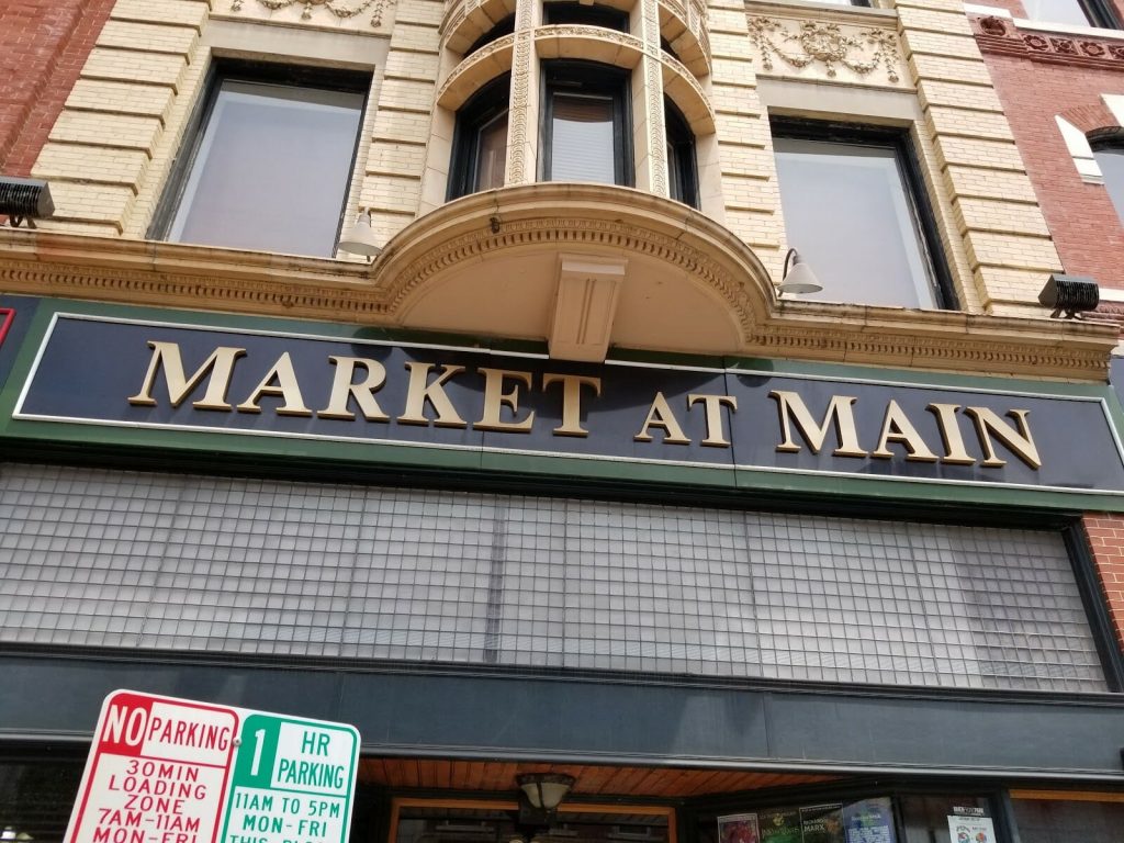 This is a great place. The ambiance is fantastic. Downtown Lynchburg takes you back to a different era; a better, quieter, simpler one. It is so peaceful and enjoyable being there. At Market at Main you can be in the midst of this feeling both within and without (the store front allows a great street view.) The stamped ceiling and the old large blade fans are beautiful. The old building is maintained so beautifully and is so cozy to be in. The food is delicious and there are many vegetarian options.